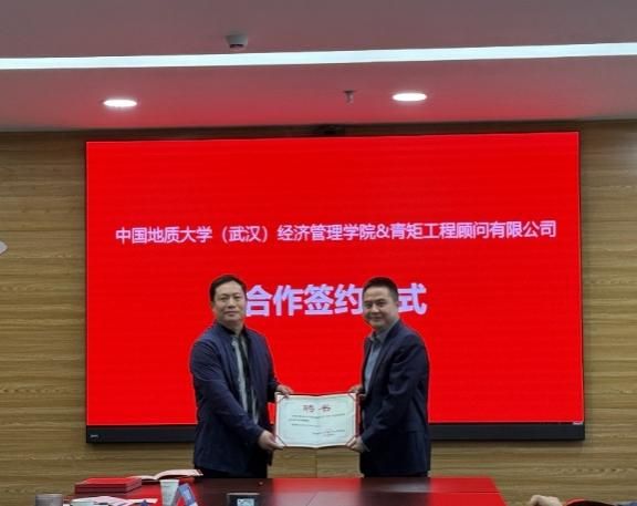 会议由管理科学与工程系副主任丁丽萍主持。 郭海湘副院长在致辞中表示,学院高度重视产教融合与实践育人,此次与青矩工程顾问有限公司合作,是工程管理专业对接行业需求、提升人才培养质量的重要举措。青矩工程顾问公司总经理蔡石磊介绍了企业发展情况、行业优势与技术实力,表示将充分发挥企业资源优势,积极支持学院实践教学与学生实习实训,助力学院培养更多符合行业发展需要的专业人才。会议上,双方代表共同签署校企合作实习实践基地协议。