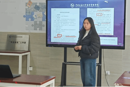 团委组织部邓婷芮同学开展工作培训。她详细解读了组织生活会学习、互评、评议、点评、宣誓的流程,强调组织生活会需线下开展,各支部参与组织生活会人数不少于总人数三分之二;团员教育评议结果为优秀或合格,优秀占比不超过30%。她细致讲解了系统录入、团籍注册等操作规范。