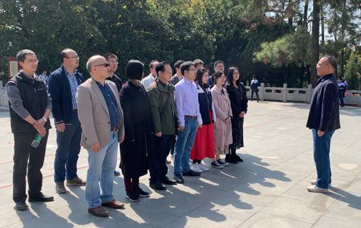 31日上午,在麻城市烈士陵园纪念碑前,全体党员整齐肃立,怀着沉痛的心情瞻仰烈士墓,并集体默哀,向革命烈士进献花圈,并重温入党誓词,以此表达对烈士的崇高敬意,寄托对革命先烈的无限哀思。老党员诸克军教授说,缅怀先辈的丰功伟绩,心情十分激动,深深感受到现在美好生活的来之不易,希望大家努力工作,努力践行共产党员先进性,自觉投身中华民族复兴的伟大事业。
