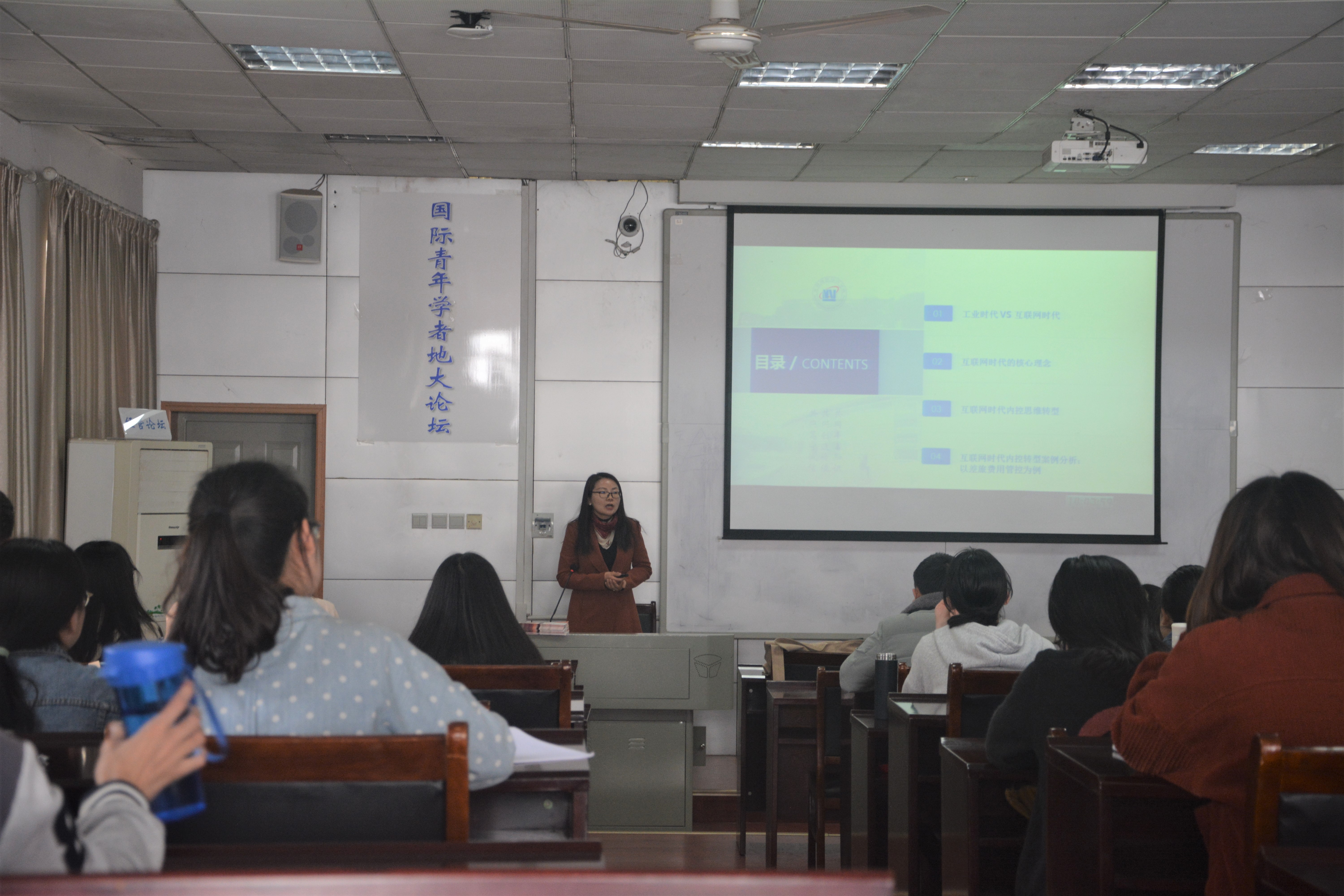 (学生记者:吴麟)2019年4月3日下午2点半,第208期经管论坛在MBA楼208成功举办,本次论坛的主讲嘉宾是北京国家会计学院教研中心副教授胡明霞副教授。胡明霞副教授是经济管理学院会计专业的校友,中国会计学会会员,美国会计学会会员,曾在美国俄亥俄州立大学访学,在《会计研究》等刊物发表学术论文20多篇。本次论坛胡老师讲解的主题是"互联网时代内控思维创新及其应用解析"。经管学院部分师生到场听讲。