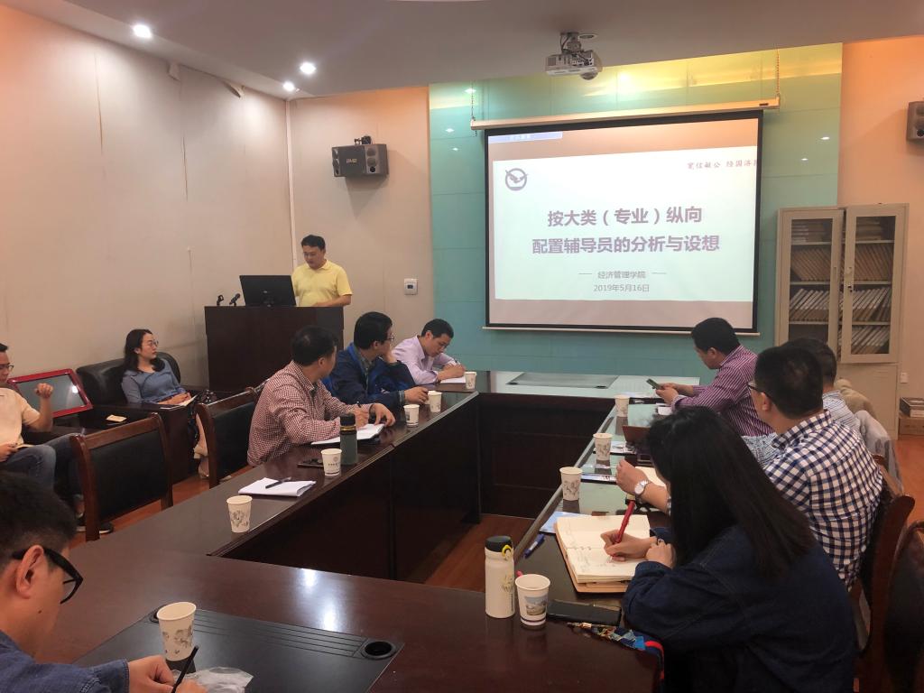 学院党委书记杨昌锐结合试点工作和新校区搬迁汇报了前期的筹备情况。院党委副书记沈波就学院按大类(专业)纵向配置辅导员的分析与构想做了专题汇报。与会的经济管理学院教师发表意见,一致认为辅导员纵向设置是开展“三全育人”的重要路径,有助于提升学院本科生人才培养质量。邬海峰、严嘉、朱荆萨分别就分管工作发表看法,表态支持经管学院试点开展辅导员纵向配置的相关工作。