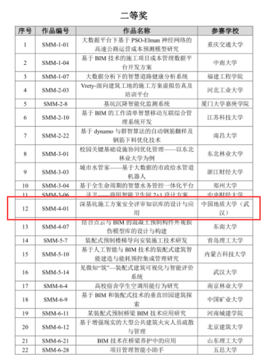 色漫网 (武汉)经济管理学院工程管理专业与计算机学院师生联合组队参加了首届大赛。团队全体成员以智慧建造为主题,经过四个多月的努力研究与开发,完成了“深基坑施工方案安全评审知识库的设计与应用”作品,在最终的决赛中取得二等奖的好成绩(一等奖10支代表队、二等奖22支代表队)!