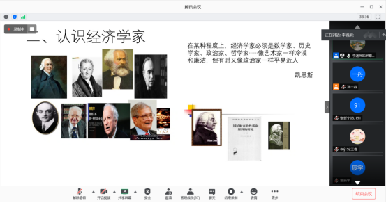 李通屏老师表示:“经济学就是经济学家所做的工作,理解经济学、认识经济学的一个重要途径就是认识经济学家。”随后,他分别介绍了马尔萨斯、马克思、厉以宁、林毅夫等古今中外的著名经济学家。不少同学表示自己对著名经济学家尤其是近现代经济学家的认识十分有限,通过李老师的讲座,他们明确了经济学家这一理解经济学的重要视角,受益颇多。