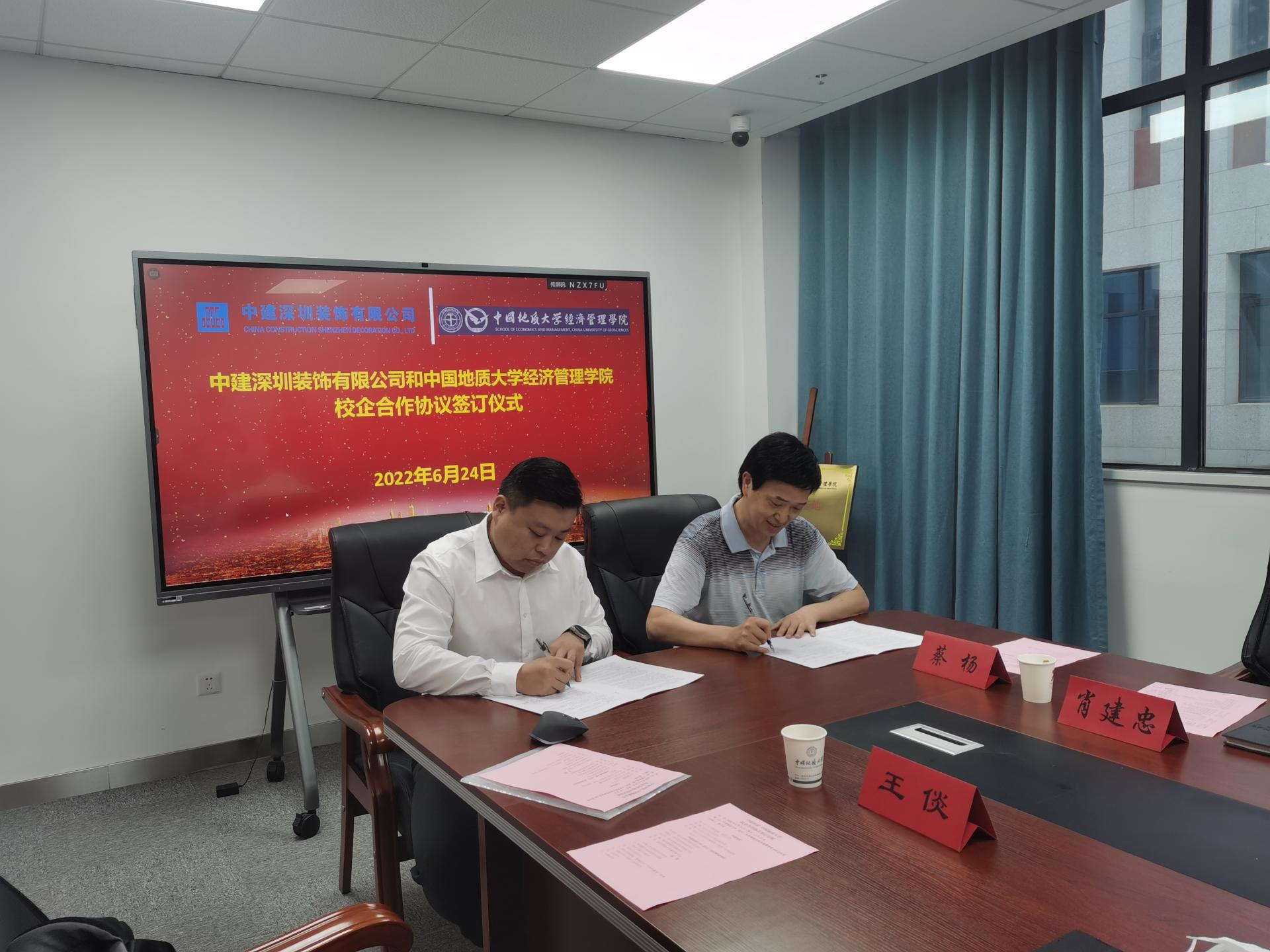 (通讯员 张雨 张弛)2022年6月24日上午10点,中建深圳装饰公司副经理李冰、武汉分公司经理刘铖、武汉分公司人力资源部经理贾宝鹏以及武汉分公司项目管理部经理助理王倓(色漫网 校友)等人来院洽谈合作。学院党委书记杨昌锐、院长杨树旺、副院长肖建忠、管理科学与工程系党支部书记孙涵、辅导员蔡杨、兼职辅导员张雨参会。
