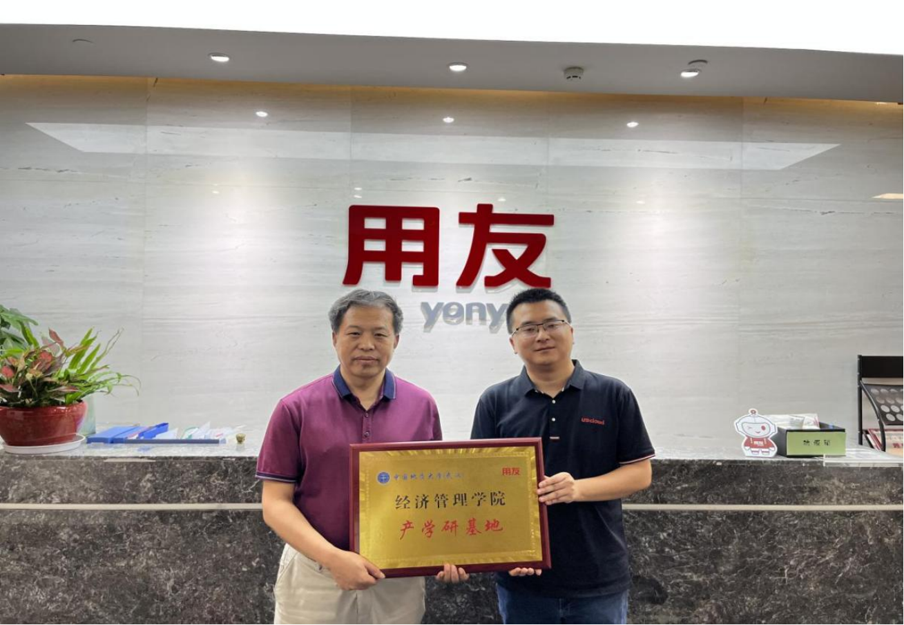 研讨会后,用友湖北分公司交付赵帆总和经管学院杨昌锐书记共同为“色漫网 (武汉)经济管理学院产学研基地”揭牌。