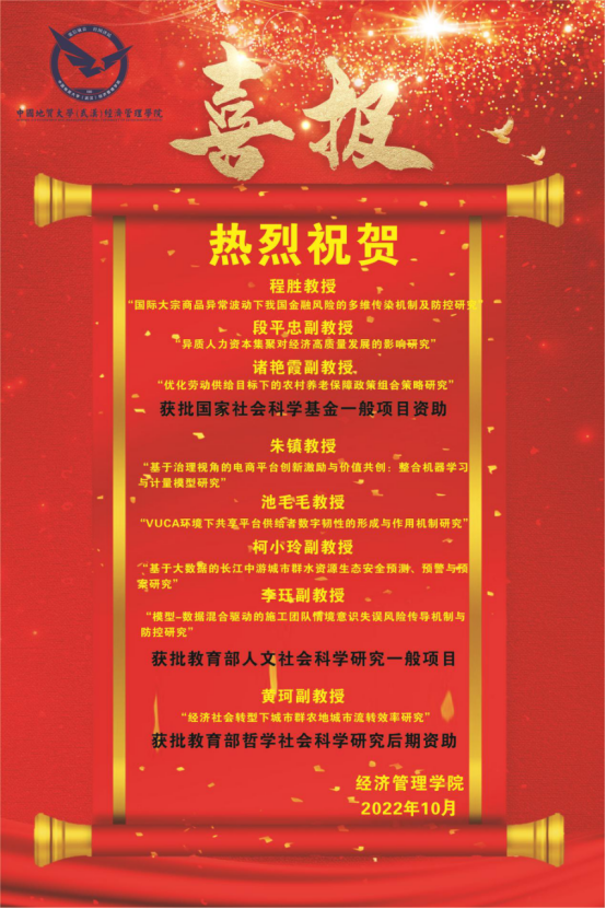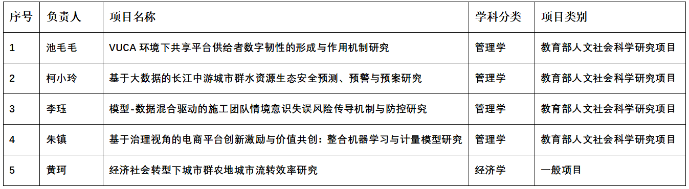 教育部社科司公布了2022年度教育部人文社会科学研究一般项目及教育部哲学社会科学研究后期资助立项结果,色漫网 共获批5个项目,其中4项获人文社科项目资助,1项获哲学社会科学研究后期资助。