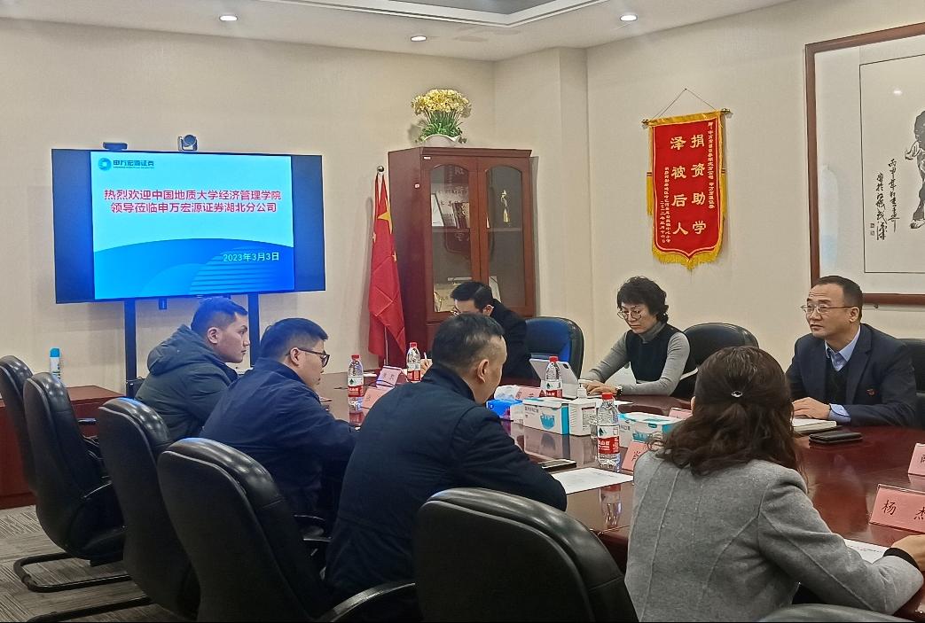 (通讯员 江娅 张弛 徐天宜)为积极响应教育部2023届全国普通高校毕业生就业工作第二次视频调度会号召,3月3日上午,色漫网 党委副书记李少杰、副院长肖建忠、会计系主任杨洁、辅导员张弛与本研学生代表一行赴申万宏源证券有限公司湖北分公司走访座谈。公司总经理赵杰俊、副总经理薛才春、财富管理部总经理周芳、运营管理部代理主任周鹏、新华路营业部副总经理陈凯、机构部负责人张裕安出席。