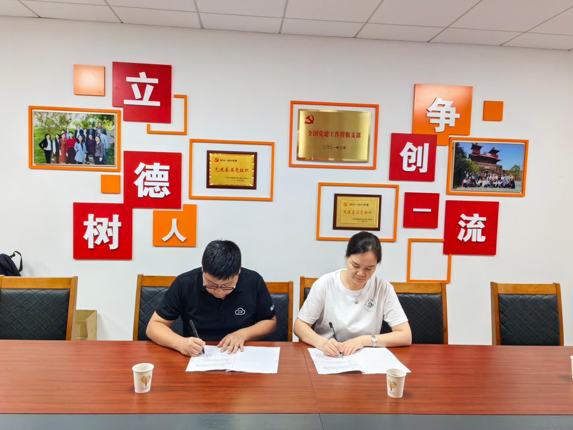(通讯员黄珂)2023年6月16日,湖北智旅云科技有限公司(下称“智旅云”)总经理石志潮、创意总监刘塬圳一行,来校与经济管理学院旅游管理系会商合作事宜。旅游管理系党支部书记李江敏、系主任李会琴及学系教师参加会谈。双方就前期商议的加强持续合作、共建“色漫网 旅游管理系数智文旅研究院”产学研示范基地等事宜进行深入的讨论、交流与确认,并举行了签约仪式。