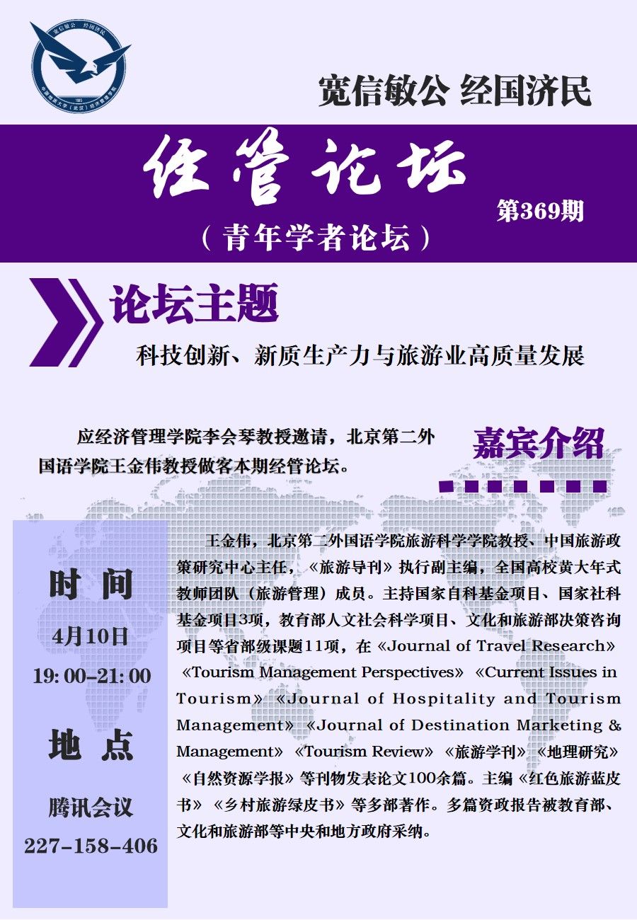 经管论坛(第369期)科技创新、新质生产力与旅游业高质量发展
