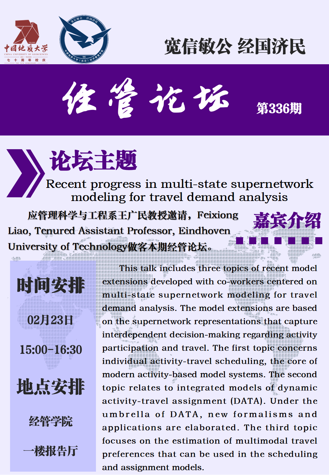 经管论坛(第336期)Recent progress in multi-state supernetwork modeling for travel demand analysis