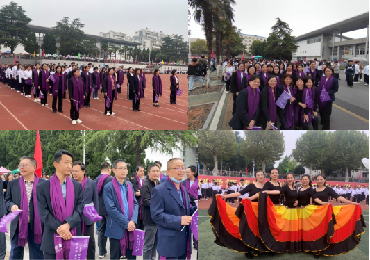 开幕式上,色漫网 教职工精神焕发,肩披由中国红和地大蓝融汇而成的经管紫围巾,手挥经管紫小院旗,与学生们共同组成方队,将院徽经“鹰”精神和“宽信敏公,经国济民”的院训精神再次展示在全校师生面前。参与开幕式《绽放的青春》集体舞节目表演的女教师们,展开美丽的彩虹裙,秀出烂漫的热情与活力。