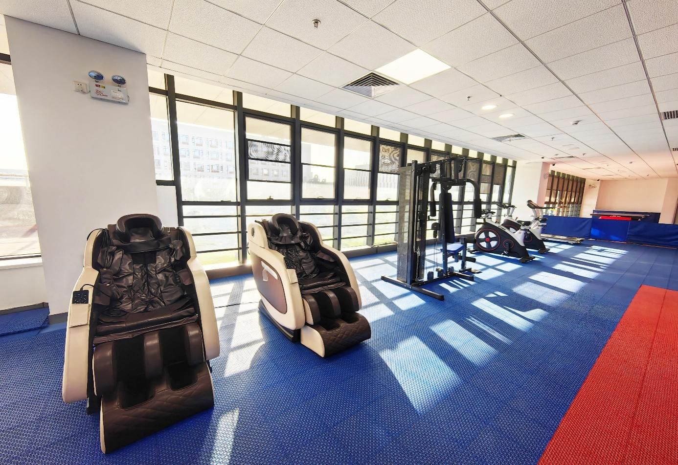 MBA活动中心拥有棋牌区、台球区、乒乓球区、按摩区、力量区等