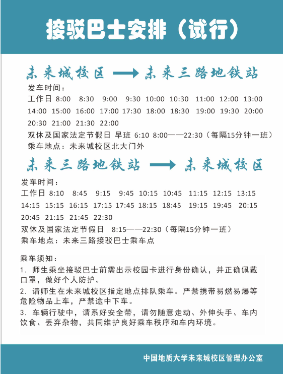 学校接驳巴士:地铁未来三路站——未来城校区