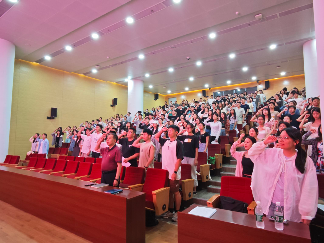 会议伊始,全体毕业生党员奏唱国歌并重温入党誓词。