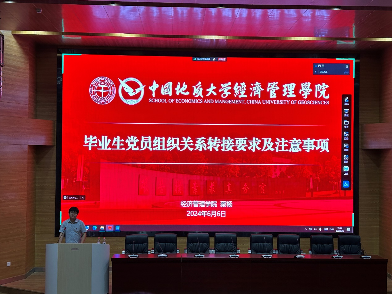 (通讯员 陈可茵)为深入学习领悟习近平总书记关于加强党的纪律教育的重要论述,全面深化党纪学习教育,2024年6月6日,经济管理学院党委组织全体毕业生党员开展毕业生党员主题党日暨毕业生党员离校前“最后一堂廉洁教育党课”,教育引导毕业生党员学纪、知纪、明纪、守纪。学院党委书记杨昌锐讲授廉洁教育专题党课,学院党建辅导员蔡杨讲解毕业生党员组织关系转接要求及注意事项,学院全体毕业生党员到场学习。