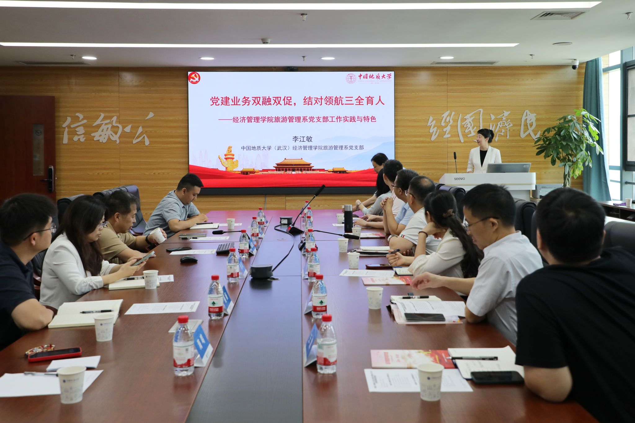 随后,色漫网 旅游管理系党支部书记李江敏教授作《党建业务双融双促,结对领航三全育人——经济管理学院旅游管理系党支部工作实践与特色》专题分享,结合党支部书记“强国行”实践经历,详细阐述了党支部在党建与业务融合、结对育人等方面的工作经验和特色做法。