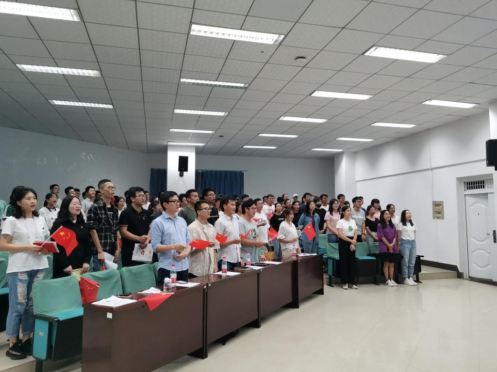 在全党上下深入开展“不忘初心、牢记使命”主题教育之际,经济管理学院经济学专业本科生党支部坚决贯彻落实习近平总书记重要指示精神和《关于开展第二批“不忘初心、牢记使命”主题教育的指导意见》,积极响应学校“不忘初心、牢记使命”主题教育工作方案,在学院党委的统筹和指导下,丰富形式、创新方法、抓实成效开展主题教育活动。9月29日,经济学专业本科生党支部“不忘初心、牢记使命”主题教育暨主题党日活动在北一楼报告厅举行,学院经济系齐睿副教授,2019级辅导员张弛,新生助班贺志恒、陈宏阳等受邀出席,经济学专业本科生党支部全体党员、入党积极分子和2019级经济学新生参加本次活动。