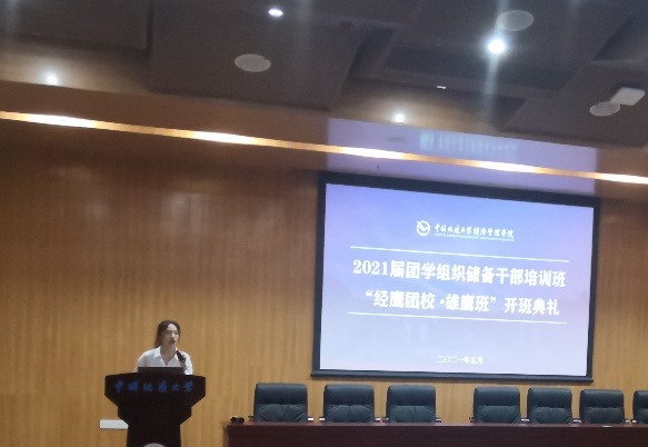 2021年5月22日下午14:00,经济管理学院2021届团学组织储备干部培训班——“经鹰团校·雄鹰班”开班仪式暨团学组织党史学习教育活动在经管楼一楼报告厅召开。出席本次会议的有:经济管理学院党委副书记李少杰老师,院团委书记田昆老师,学工组张弛老师、徐媛老师和徐天宜老师,学生会主席团成员及2021届储干班全体成员。