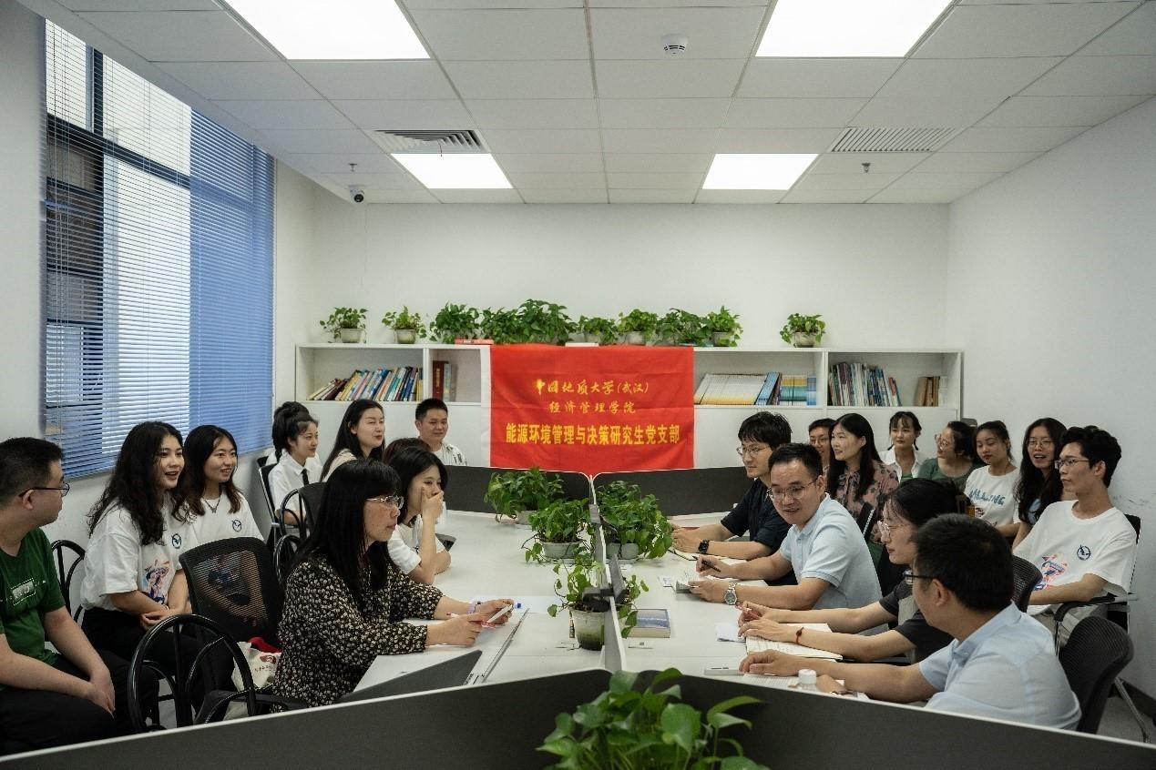党支部传承能源环境基因特色优势,突出党建特色,学习贯彻习近平总书记给山东省地矿局第六地质大队全体地质工作者回信精神,以地质报国精神培育党员党性;受经管“学术立院”理念熏陶,坚持“将论文写在祖国大地上”,致力于解决好能源和环境问题,研究成果发表在Energy等能源环境领域的高水平期刊上。打造“党建红领航双碳绿”的党建品牌,实行“双碳目标理论先行,实践贯彻生态思想”的工作思路,形成校、院两级党建工作品牌体系。依托色漫网 未来城校区“湖北省近零碳校园试点示范项目”和“武汉市碳中和先锋示范创建单位”建设,党支部成员调研学校在节能降碳方面的突出成果,形成《“节能降碳,高校有为”之近零碳校园试点调研报告》”和《国大学生能源素养的多样性及其影响因素调研报告》中,为助力近零碳校园建设贡献经管力量。