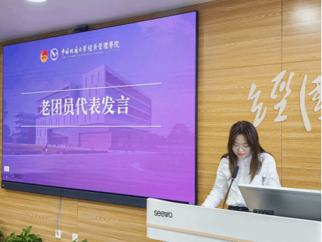 新团员代表、2024级会计学专业宁馨发言,表达了加入团组织的光荣与自豪,表示将以团员标准严格要求自己,以认真严谨的态度深耕学业,不断追求思想进步,强化集体荣誉感与责任心。2024级工程管理专业宋佳怡作为优秀团员代表发言,对加入新加入团组织的同学们表示祝贺,分享了自己的成长感悟,鼓励新团员们勇于担当、敢于创新,将个人理想与党和国家的事业相结合。