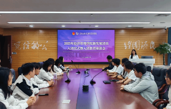 为进一步加强共青团组织建设,引导广大青年学生坚定理想信念,激发共青团员的光荣感和责任感,2025年10月31日,经济管理学院于未来城校区经管楼422会议室举行2025年秋季学期新发展团员入团仪式暨入团教育座谈会。院团委书记徐媛、副书记张弛、党员代表屈沁雅、老团员代表宋佳怡及全体2025年秋季学期新发展团员出席本次仪式。仪式由学院团委组织部负责人邓婷芮主持。
