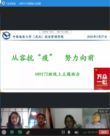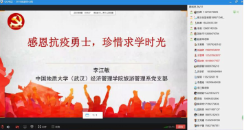 在防控新冠肺炎的严峻斗争中,学生党支部每一个学生党员都是学生中的“宣传教育员”“疫情防控服务员”“学生工作组织员”,更立志争当合格中国共产党员。主题班会中,学生党支部面向全体学生及时传达党中央、湖北省和学校学院关于疫情防控工作重要指示和文件,发掘全民战“疫”动人事迹、传达学校服务学生相关通知,让爱国主义教育有深度更有温度,努力做好全体学生“宣传教育员”。学生党支部中为武汉社区的老人发放防护口罩的陈炳轩、帮助家乡运送蔬菜支援武汉的杨俊坡、联合同学向湖北省中医院定向捐赠医疗物资的罗玮佳、一家三口坚守在疫情防控一线的贲雅雯...学生党员和入党积极分子以赤诚之心、实际行动、微薄之力为抗击疫情贡献力量,“爱是在心口难开,更要大声说出来,如果不是这次班会,他们还是默默无闻地用实际行动诠释对祖国和人民的热爱”,学生党员和入党积极分子将“疫情防控服务员”的故事在班会中亲口讲述,为广大学生树立起看齐学习的先进榜样。受新冠肺炎疫情影响,学生安全健康成为“头等大事”、就业形势复杂严峻、居家自学困难较多,学生党员既是“身在其中”的一份子,又是“带队引航”的“学生工作组织员”。各学生党支部汇聚校内外资源,或分享就业信息、或收集学生居家自学困难、或邀请优秀毕业生“说说考研和就业那些事儿”,学生党支部围绕学生所急所想,精心筹备让主题班会“干货”满满,与广大学生共同成长、坚定信心、增长才干。