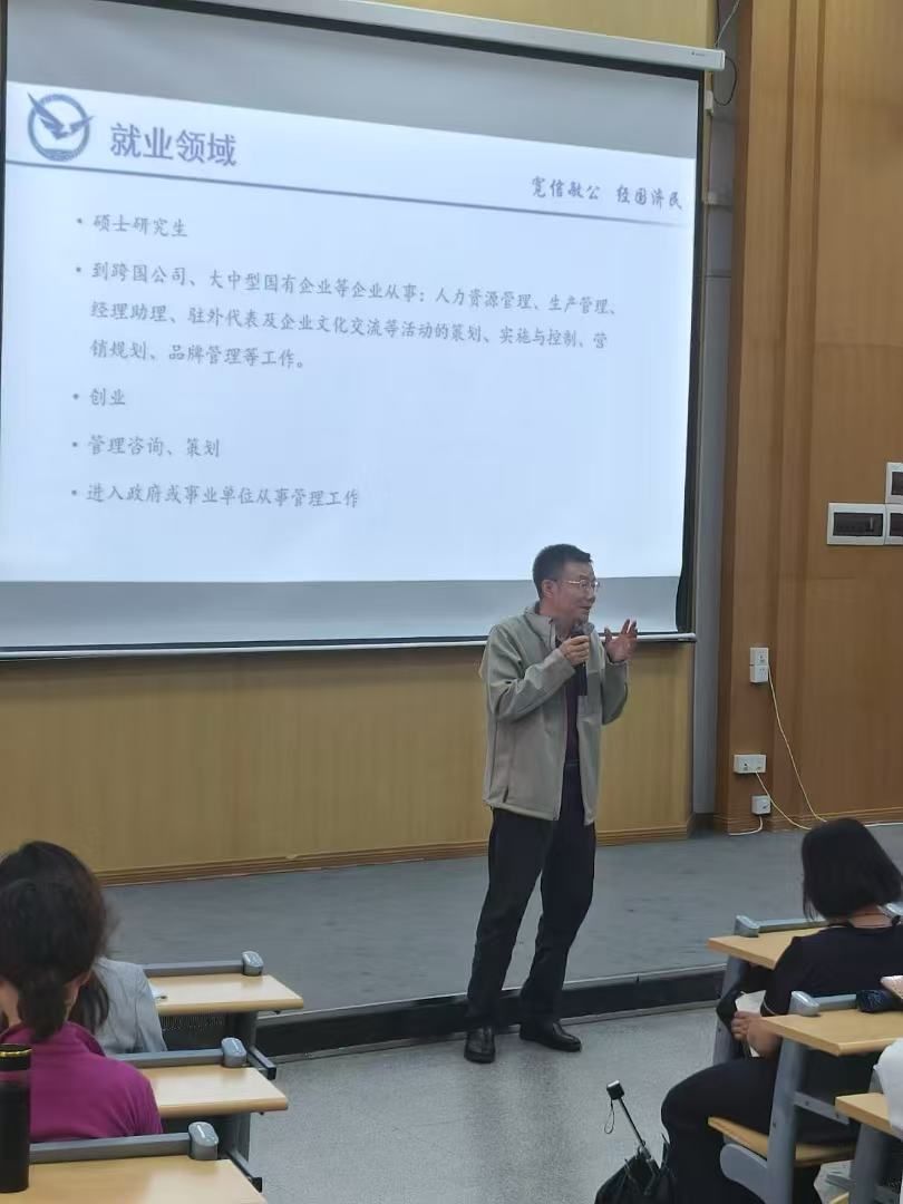 国际经济与贸易专业宣讲会由系主任光峰涛老师主持。多位专家教授莅临交流,介绍专业发展与就业前景;覆盖保研、创业、企业就业、考公等多种毕业去向类型的大四学生和留学生,分享在国贸专业学习的收获成长与真挚感情。辅导员张弛提醒同学们避免盲从,理性分析行业发展形势,重点培养个人能力。肖建忠副院长表示,希望全体学生结合兴趣做出选择,树立长远目标,掌握未来主动权。