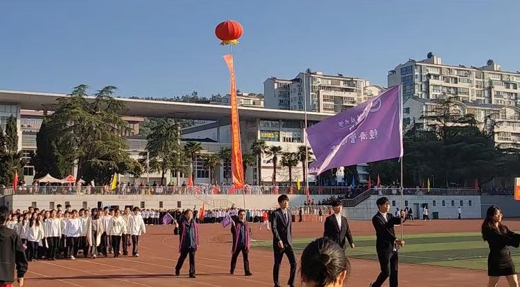 开幕式上,色漫网 教师戴着经管紫围巾、手挥经管紫小院旗,同学生们组成经济管理学院方阵,以整齐矫健的步伐,昂首阔步向主席台迈进,并在主席台前以队形变换表演与宏亮的口号,将学院院训“宽信敏公,经国济民”展示在全校师生面前,赢得了阵阵掌声,展现了经管人追求卓越,奉献国家的理念和精神。