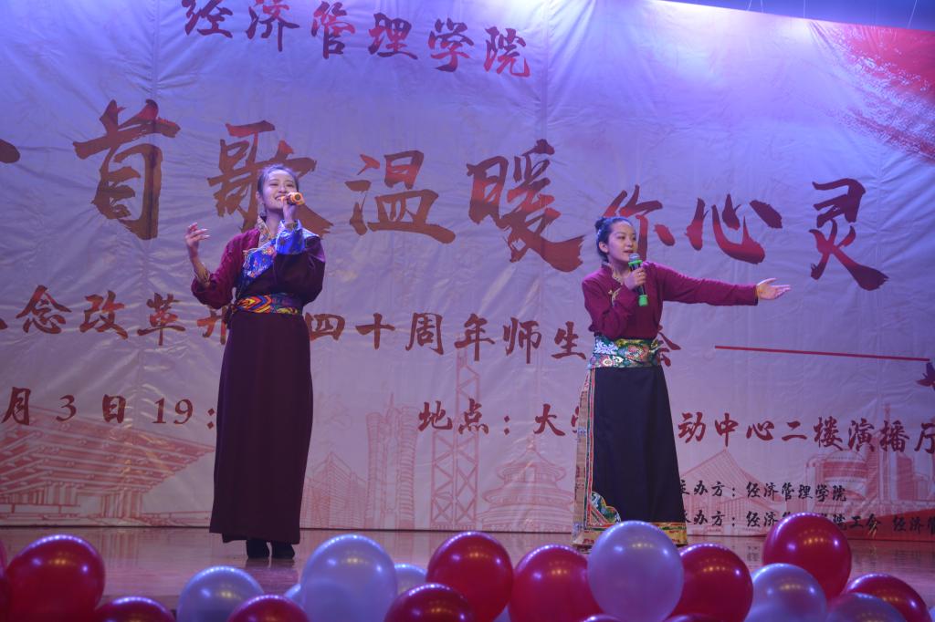 本次歌会分为“春回大地”“激情岁月”“乘风破浪”“继往开来”四个篇章,以歌曲的形式纪念了改革开放走过的极不平凡的四十年,用最温情的方式增进了师生间的感情,拉近了师生间的距离,每一首精心准备、深情演唱的歌曲都表达了经管人对党和祖国的热爱。歌会结束后,参加歌会的2017级本科生张康激动地说;“第一次看到这么多自己的老师上台表演,气氛真的很活跃。感谢这场歌会让我们多对讲台下的老师有了更多的了解,祝福学院越来越好,也祝福祖国改革开放的道路越走越宽广!”