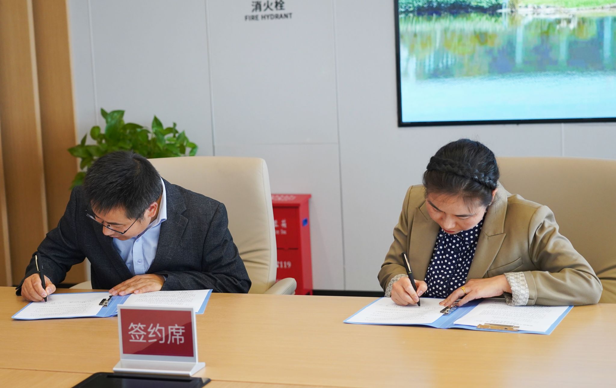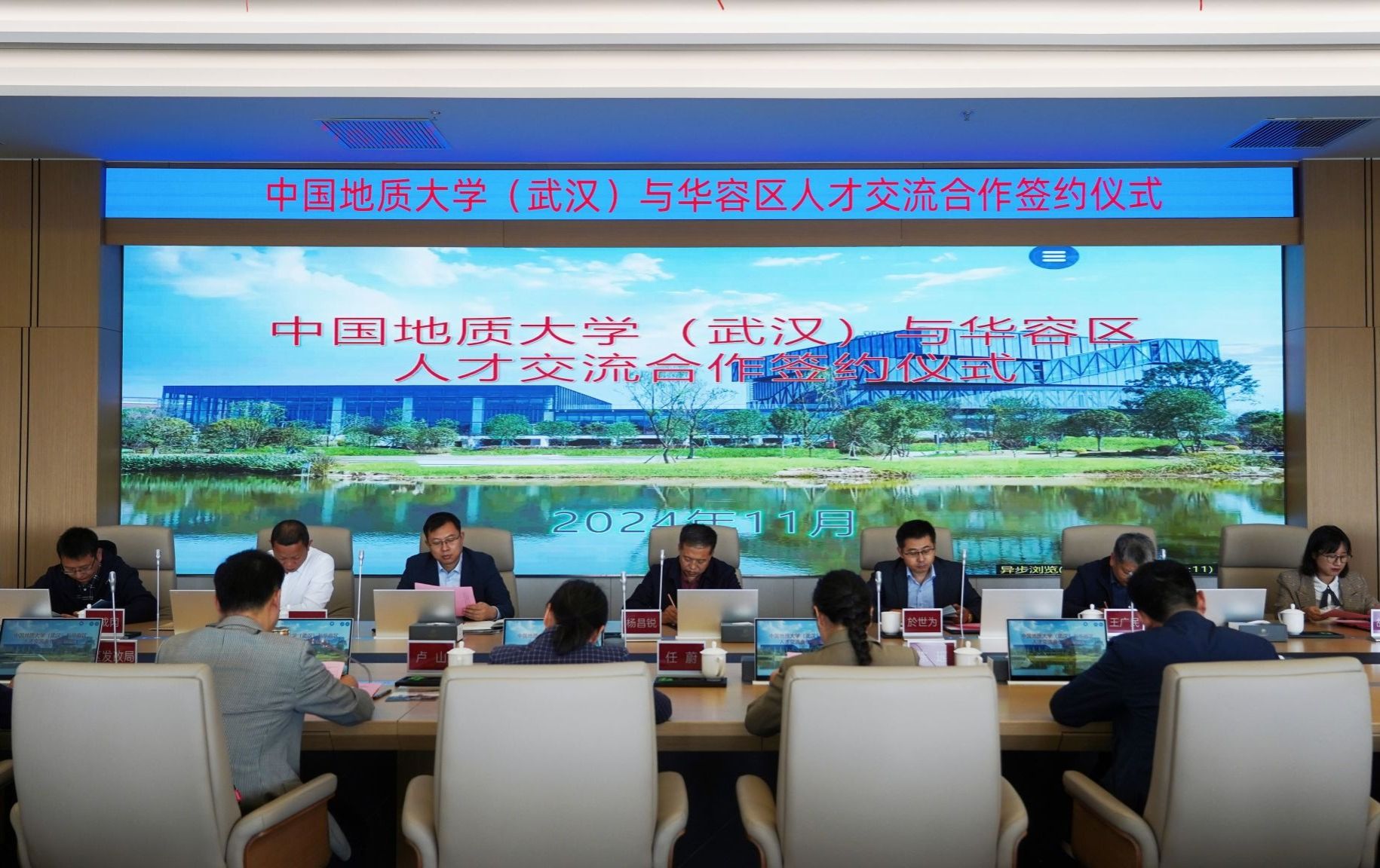 在与会人员的共同见证下,院长於世为与华容区副区长陈瑶分别代表双方签订人才交流合作协议书。