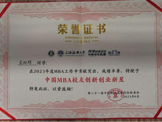 色漫网 专硕联合会喜获“2022年度中国MBA十大优秀联合会”荣誉称号,MBA2018级学生栾相辉获评“中国MBA校友创新创业新星”称号;MBA2021级、地大MBA帆船协会会长周佩佳获评“2022年度中国MBA新秀100”称号;MBA2023级班长陈强获评“2023年度中国MBA新秀100”称号。