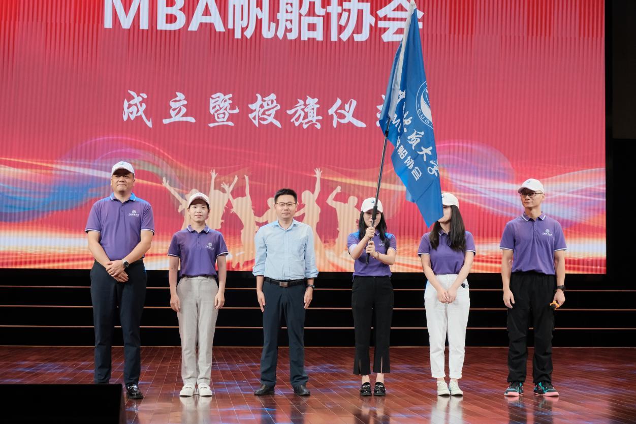 於世为院长向MBA帆船协会首届会长、21级MBA周佩佳授旗