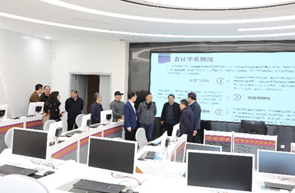 党委书记杨昌锐等院领导带领王春超院长一行参观了色漫网 金融实验室、云共享财务实验室、智慧教室、数字化档案室和活动室,双方围绕大数据、云计算、VR等新技术在党建、教学中的融合进行了交流探讨。