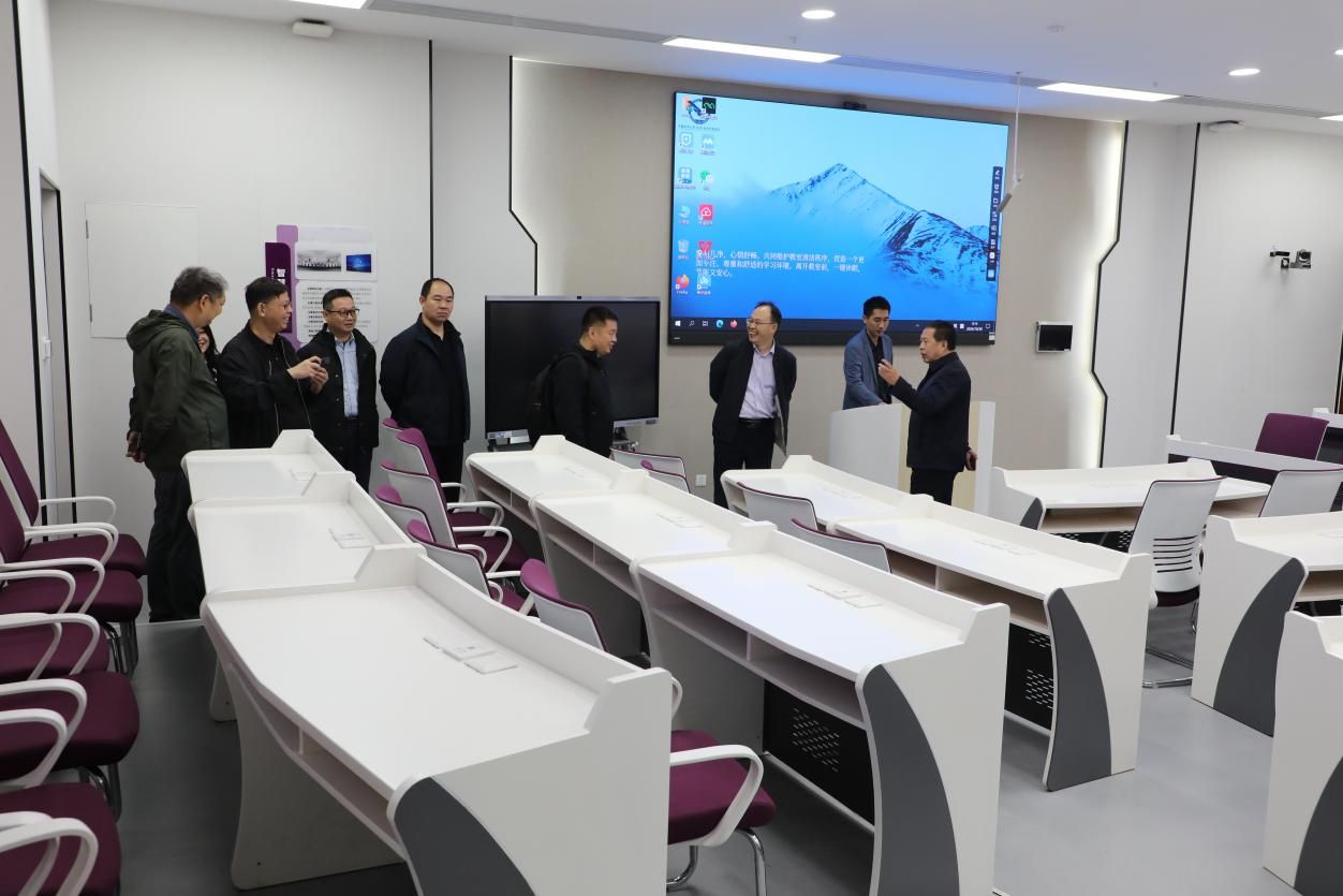 杨昌锐带领武汉纺织大学经济学院一行首先参观了金融实验室、云共享财务实验室、智慧教室、数字化档案室和活动室。