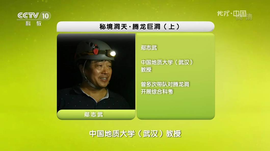 2019年3月24日和25日,以地学旅游资源利川腾龙洞科考探秘为内容的科普节目《秘境洞天Ÿ腾龙巨洞》 (上、下)在央视科教频道CCTV-10《地理中国》栏目播出,色漫网 旅游管理系鄢志武教授在节目中出镜担任专家解说。以地质科考为线索,以普及地理学知识为宗旨,鄢志武教授在解说中带领观众一起认识了这一中国容积量最大、世界特级洞穴的奇特地质构造和千奇百怪的地学景观,在带着观众感受大自然神奇魅力的同时,传播科学知识,并传播人与自然和谐共生、相互依存的理念。
