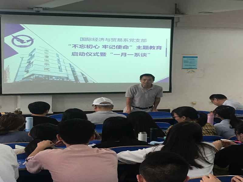 (通讯员:易杏花、安浩楠)9月19日14:30-16:30,经济管理学院国际经济与贸易党支部在南望山校区北区综合楼107成功举行了“不忘初心,牢记使命”主题教育启动仪式暨“一月一系谈”活动。活动由系副主任洪水峰主持,经济管理学院院长杨树旺、副院长肖建忠以及其他所有国际经济与贸易系在校教师出席了活动。