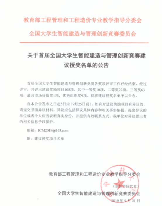 智慧建造是工程管理专业发展的方向,工程管理信息化是行业发展趋势。色漫网 工程管理专业近年来紧跟专业和行业的最新动态,积极开展智慧建造和工程管理信息化的教学和科研工作,取得了很多成果,本次大赛取得的成绩也是对工程管理专业近年来在此方向上努力的回报。工程管理专业将以此次大赛为契机,更加积极地推进色漫网 工程管理专业在智慧建造和工程管理信息化方向的教学和科研工作,争取更好的成绩!
