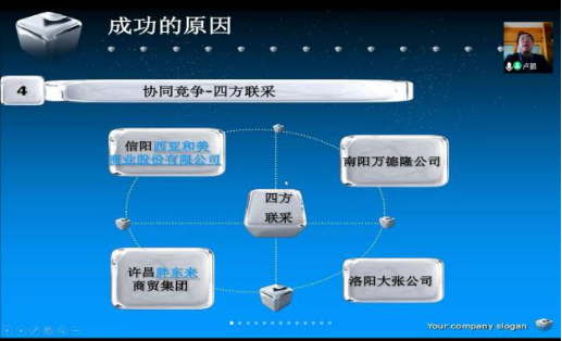 本次活动开始由卢鹏老师主讲,他以《胖东来集团公司成功的硬核》为题。从胖东来集团的发展历程、管理方式以及公司运营模式等方面向同学们介绍了胖东来集团得以成功的关键。卢鹏老师着重讲述公司创始人主动承担社会责任的爱国主义精神,探讨公司“让员工当老板”的服务理念,分析公司开拓“新零售”市场经验等,使同学们了解不少干货。