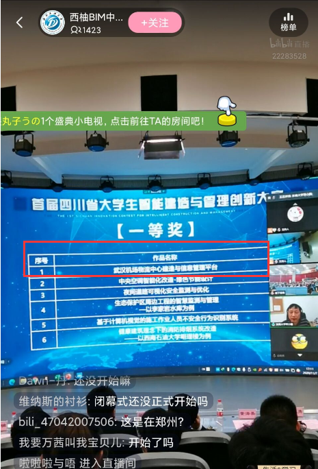 2020年11月7日,由四川省教育厅主办,西南石油大学承办的首届四川省智能建造与管理创新大赛总决赛在互联网上在线举行。大赛欢迎省外高校参加,色漫网 工程管理专业同学组成了两支队伍参加了本届比赛,经过三个多月的作品准备和初赛,共有53支代表队进入最后总决赛。