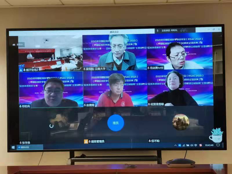 (通讯员 郑坤)2021年12月24-26日,由中国区域科学协会、云南大学主办,中国区域科学协会空间经济学专业委员会、云南大学经济学院、北京大学首都发展研究院承办的2021年中国区域科学协会年会暨“区域承载美好生活——迈向高质量发展的新空间格局”主题研讨会在云南大学召开(线上)。共计1200余人次参加了此次会议。色漫网 区域经济团队邓宏兵、白永亮教授、易明教授、胡守庚教授、洪水峰副教授等30余名师生参加了本次会议。邓宏兵教授参加了“区域承载美好生活”高端对话,他围绕共同富裕,从疫情防控与高质量发展两个维度阐述了区域发展中如何实现美好生活的愿景,并希望未来区域科学的相关专家学者能够共同助力推动区域高质量发展,实现人民对美好生活的向往。邓宏兵教授作为点评人参加并点评了分论坛二“低碳背景下区域创新发展模式”相关报告,博士生郑坤等同学在分论坛上做了发言。