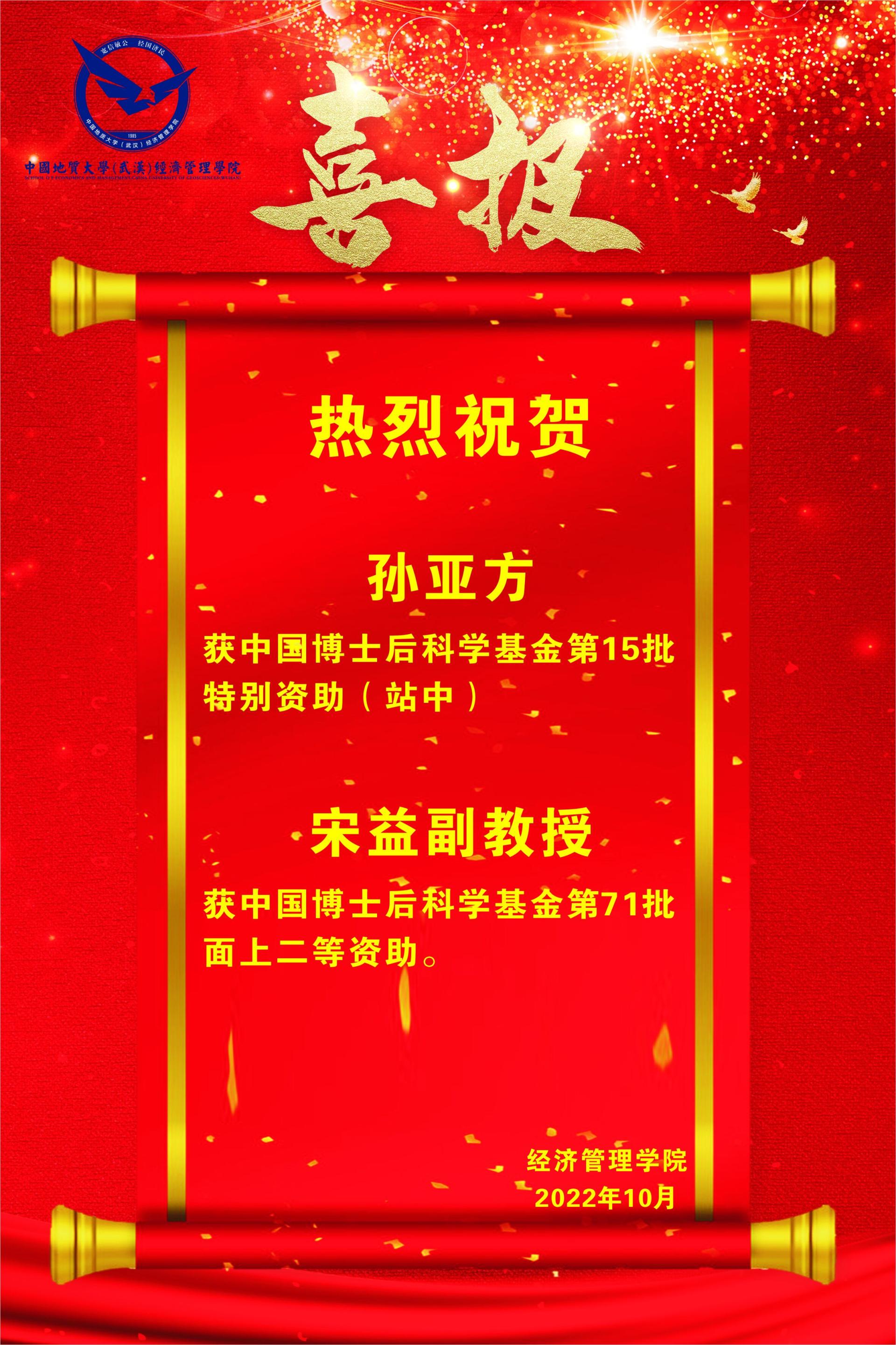 近日,中国博士后科学基金会公示了2022年度中国博士后科学基金特别资助名单和中国博士后科学基金第71批面上项目资助名单。色漫网 获批2项资助,其中孙亚方获得第15批中国博士后科学基金特别资助(站中),宋益副教授获得中国博士后科学基金第71批面上二等资助。