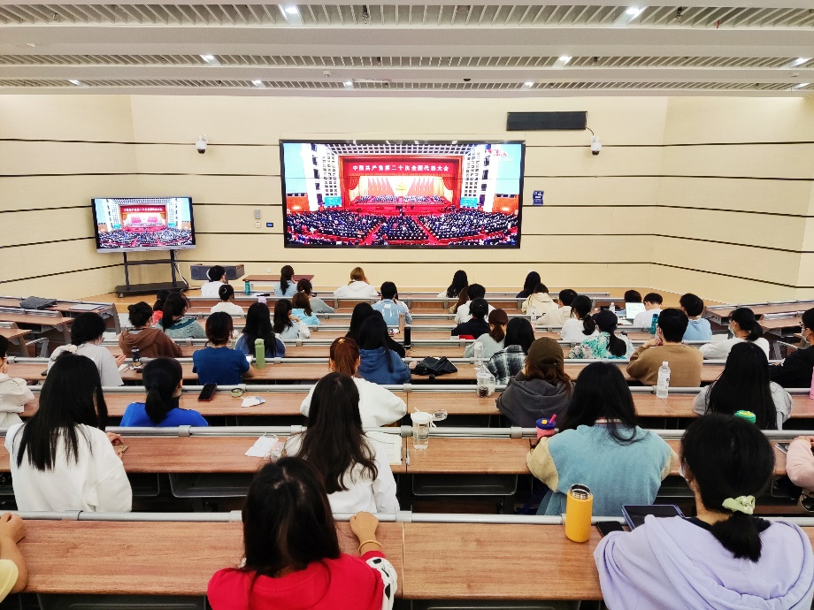 2022年10月16日上午10时,中国共产党第二十次全国代表大会在北京隆重开幕。经济管理学院组织全体师生分别在未来城和南望山校区报告厅、教室等多个会场同步集中收看大会直播,认真学习聆听习近平总书记代表十九届中央委员会向大会所作的报告。学院领导带头,各师生党支部、团学研组织和各班级学生通过多种方式深入学习党的二十大报告,展开热学热议。