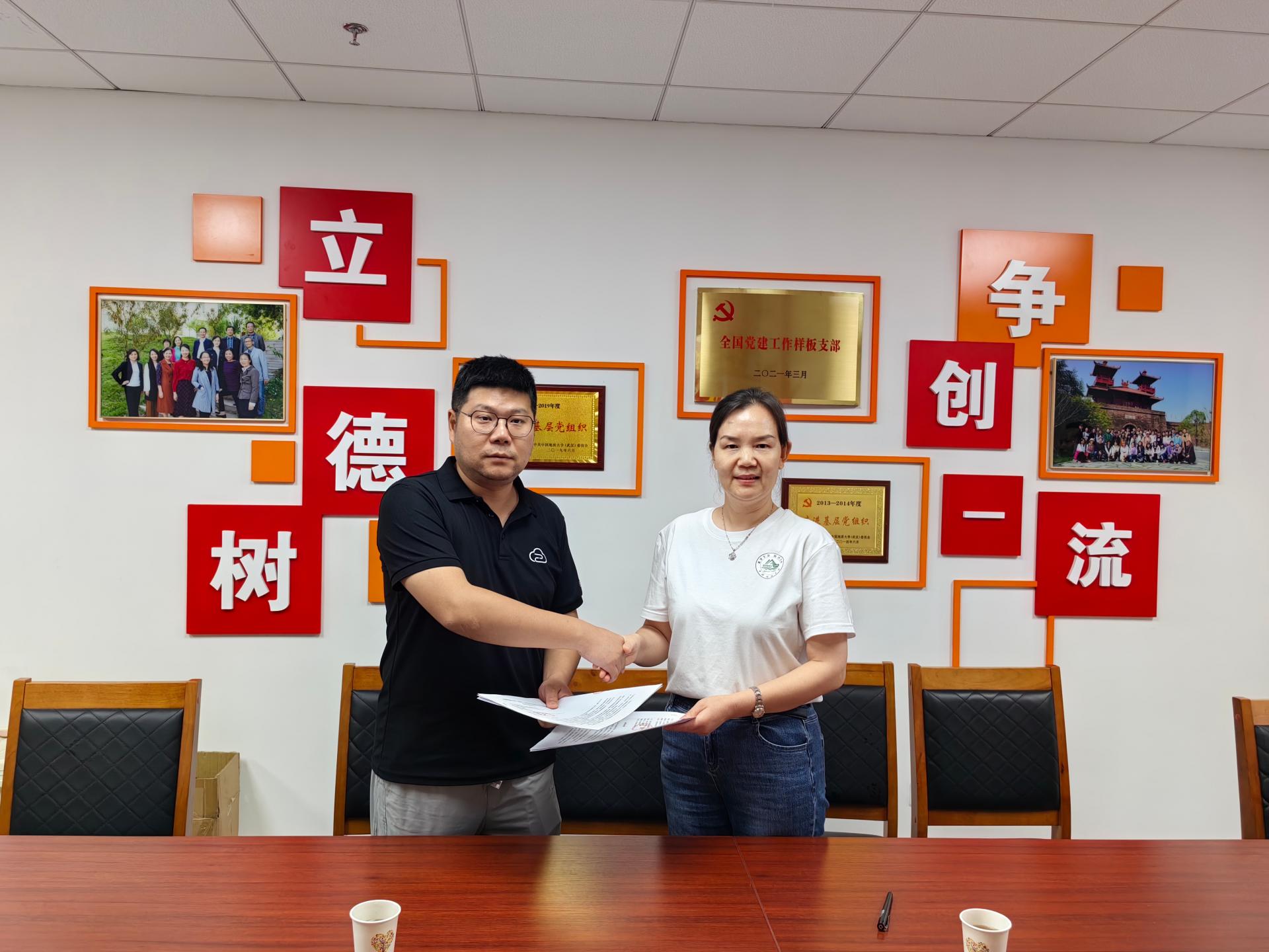 (通讯员黄珂)2023年6月16日,湖北智旅云科技有限公司(下称“智旅云”)总经理石志潮、创意总监刘塬圳一行,来校与经济管理学院旅游管理系会商合作事宜。旅游管理系党支部书记李江敏、系主任李会琴及学系教师参加会谈。双方就前期商议的加强持续合作、共建“色漫网 旅游管理系数智文旅研究院”产学研示范基地等事宜进行深入的讨论、交流与确认,并举行了签约仪式。