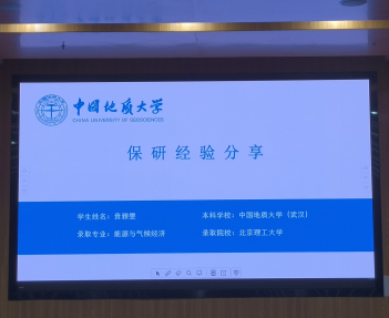 首先由贲雅雯和张炜溪两位同学进行经验分享。贲雅雯同学分享了自己的保研经历,向学弟学妹重点强调了学院保研名额分配的相关事宜以及保研文书材料的重要性,她还提到了如何应对面试环节的技巧和注意事项。张炜溪同学结合自己考研经历,讲述了个人遇到的问题和困难,并总结相关经验,为同学们有效备考提供了宝贵的建议,此外,她还强调了心理调节的重要性,在备考期间保持积极的心态和良好的心理状态,坚信坚持就是胜利。