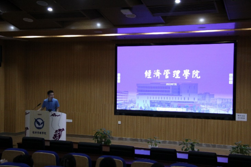 经济管理学院院长於世为在开营仪式上致辞并做学院介绍。他从经管学院的历史发展为切入点,讲述了建院以来学院的各学科从无到有、从小变强的发展历程,介绍了学院目前应用经济学、管理科学与工程等优势学科,多个省级、校级科研平台和学术交流平台,以及雄厚的师资队伍,重点从学院思政课堂、制度保障、师资配比、重大科研项目、经费资助、国际交流等方面的情况介绍,突出了学院强化思想理论教育和价值引领,坚持以学生为本、以学科为基础的教育理念,明确了学院对学术学位研究生重科研能力、创新意识培养,重视通过重大科研任务育人,构建“三融三跨”研究生培养模式下,研究生教育内涵式发展。
