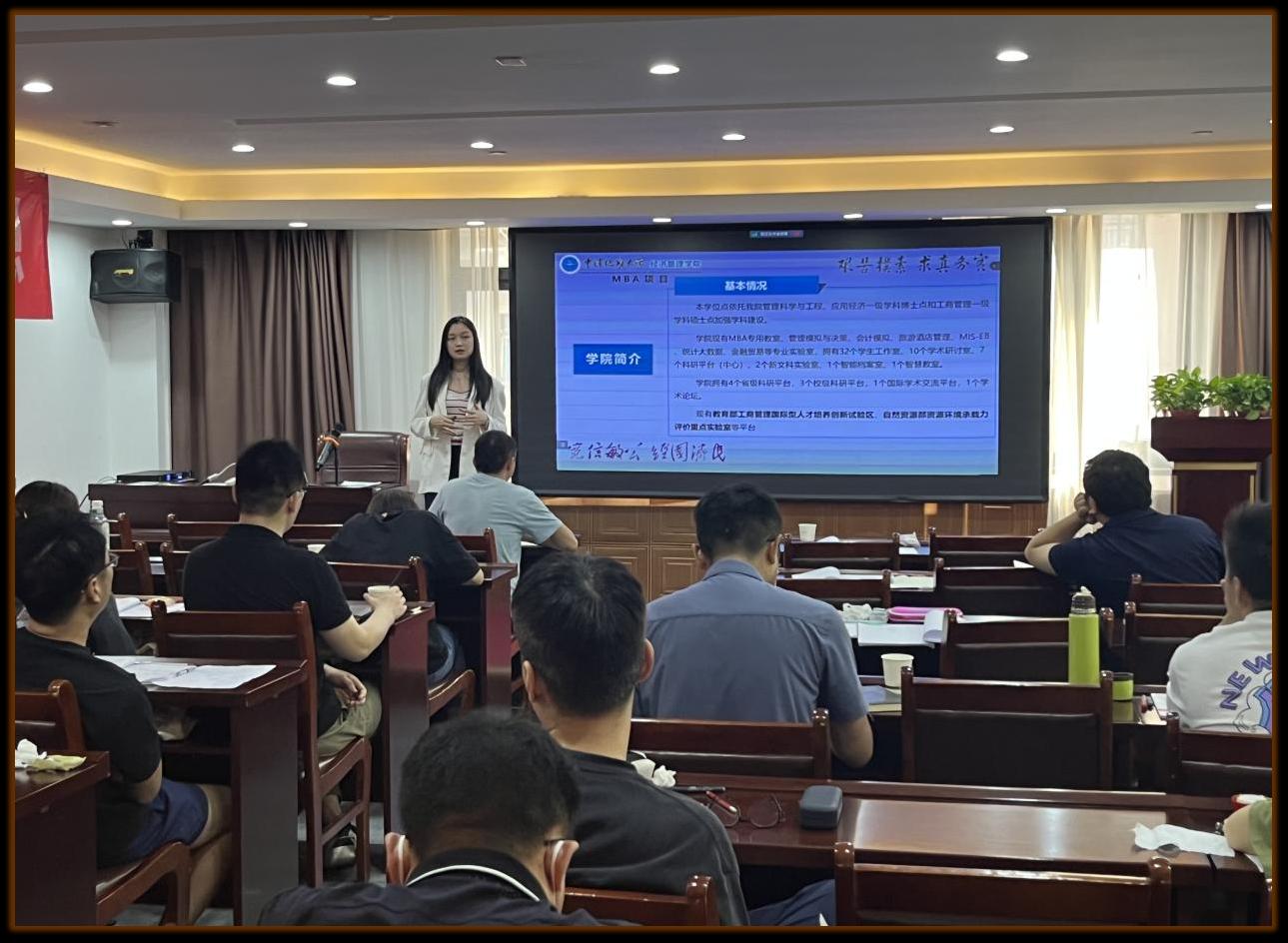 宣讲会上,张老师从学校、学院、MBA项目三个层面层层递进,从点到面,进行多维度项目介绍。从培养方案、MBA特色项目、师资力量、招生政策、国际交流、文化品牌建设等方面进行具体介绍。其中特别指出色漫网 MBA专业特色,注重实践与交流,如不定期组织企业参访、开展丰富的校内校外学生实践交流活动。张老师提出,在地大攻读MBA项目期间,不仅能获得高质量、高水平的学业指导,更能丰富学生课业活动,提升实践能力,拓展人际关系。张老师还列举了优秀MBA在校生及毕业生事迹,为备战考研学子树立信心。