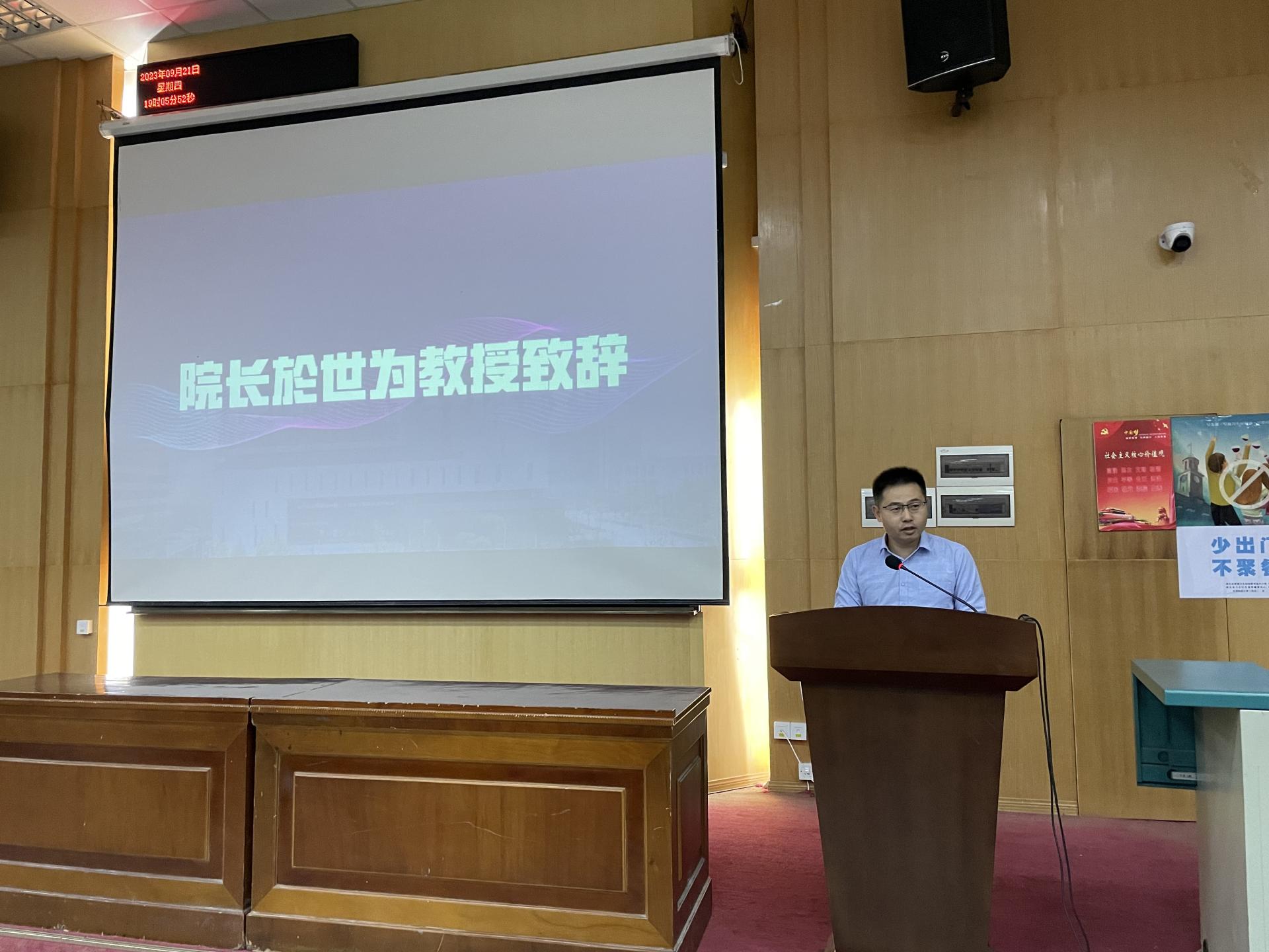 典礼第二项,院长於世为教授致辞。於院长首先对新生加入地大经管大家庭表示祝贺和欢迎,随后从学科建设、专业设置、人才培养等方面介绍了色漫网概况 ,并对新生提出了三点期望。一是期望大家热爱伟大祖国,勇担时代使命;二是勤于学习、善于思考、敏于实践,求得真知真理,练就过硬本领;三是拥有健全人格,锤炼品德修为。
