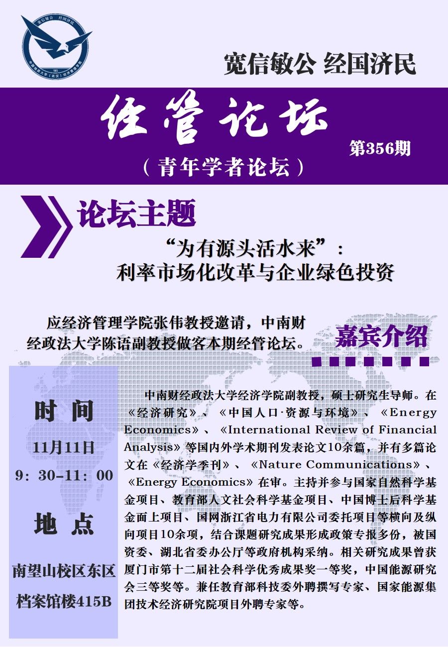 经管论坛(第356期)“为有源头活水来”:利率市场化改革与企业绿色投资