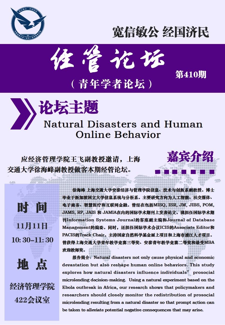 经管论坛(第410期)【青年学者论坛】Natural Disasters and Human Online Behavior