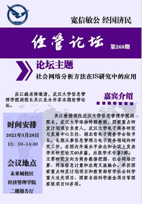 经管论坛(第269期)社会网络分析方法在IS研究中的应用